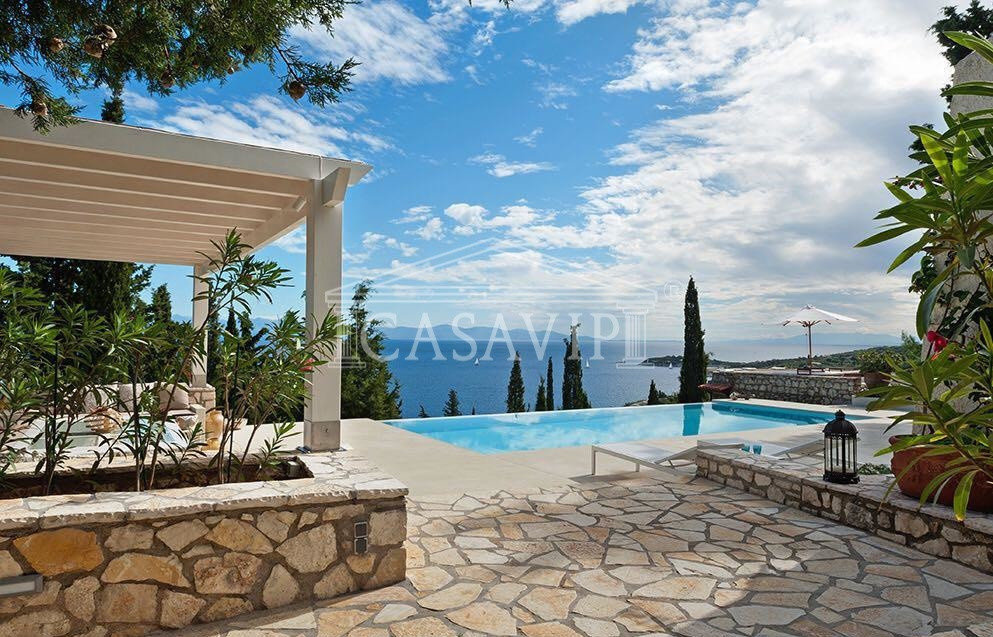 Nella fantastica cornice di una delle più affascinanti e conosciute isole greche, in uno dei suoi punti migliori tra il Porto di Gaios e quello di Longos, allo stesso tempo a 5 minuti a piedi dall’esclusiva spiaggia attrezzata di Kaki Langada, a picco sul mare e con panorama mozzafiato verso la Penisola greca, abbiamo il piacere di offrire la rara opportunità di acquistare lussuosa villa unifamiliare, oltre ampio parco con piscina.