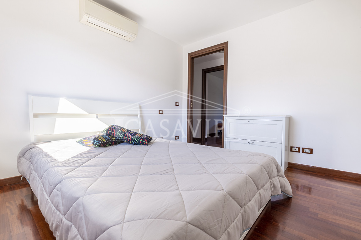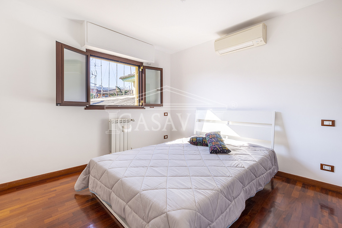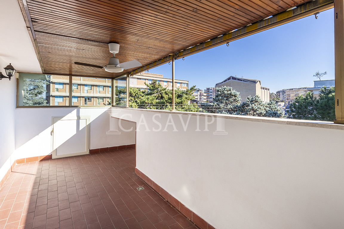 Completamente ristrutturato con l'impiego di materiali e finiture di prima qualità come pavimento in parquet, porte in legno di cui gran parte scorrevoli, infissi in vetrocamera, avvolgibili elettrici e grate di sicurezza, l'appartamento è inoltre dotato di impianti tecnologici per il condizionamento dell'aria nel salone e nella camera matrimoniale, impianto tv con prese antenna in tutti gli ambienti compresa la veranda.