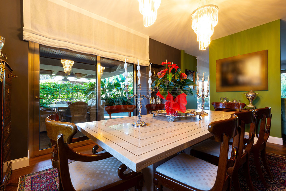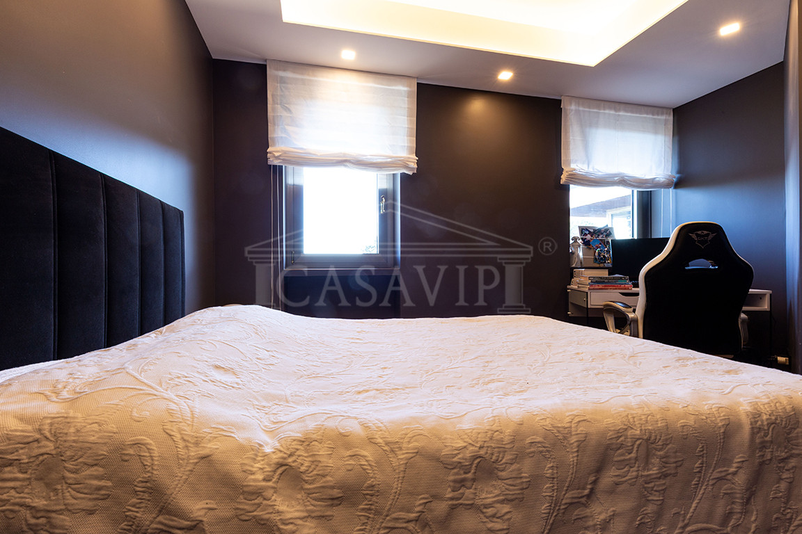 La zona notte separata è composta da quattro camere da letto, di cui tre matrimoniali con bagno interno da destinare ai figli; suite padronale di circa 40mq complessivi composta da corridoio con armadiature su misura, doppio vano guardaroba e ampia camera matrimoniale con bagno.