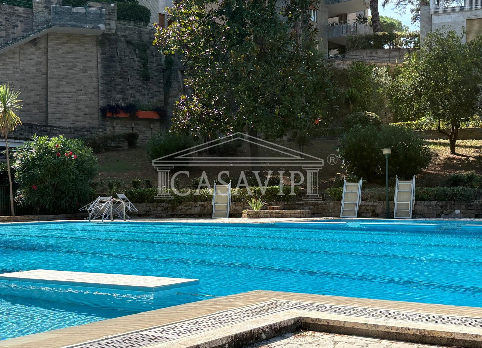 All’interno di uno dei centri residenziali più prestigiosi della zona, immerso nel verde, dotato di servizio di guardiania, piscina e campi da tennis, allo stesso tempo perfettamente posizionato dal punto di vista logistico e della viabilità, in prossimità di note scuole a lingua inglese, negozi, servizi, a poche centinaia di metri dal GRA ed a 10 minuti dal centro di Roma, abbiamo il piacere di offrire la più unica che rara possibilità di acquistare meravigliosa residenza posta al piano attico, all’interno della quale sono appena terminati lavori di completa ed integrale ristrutturazione.