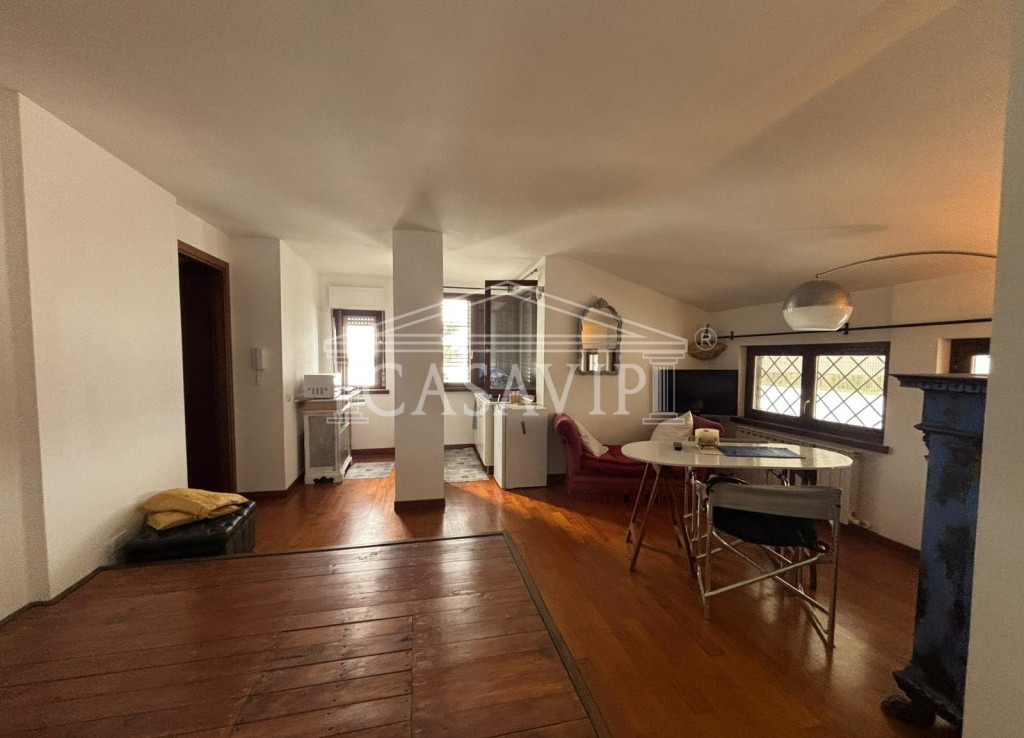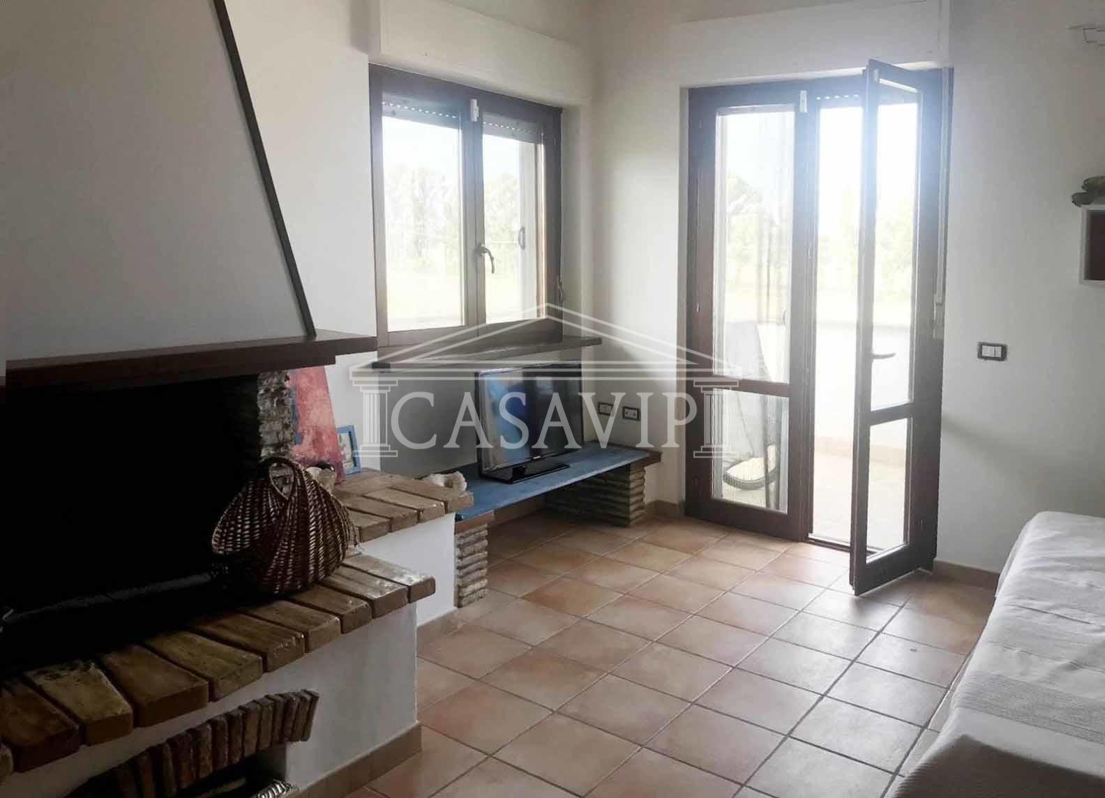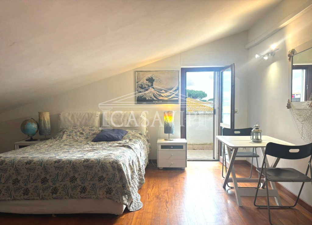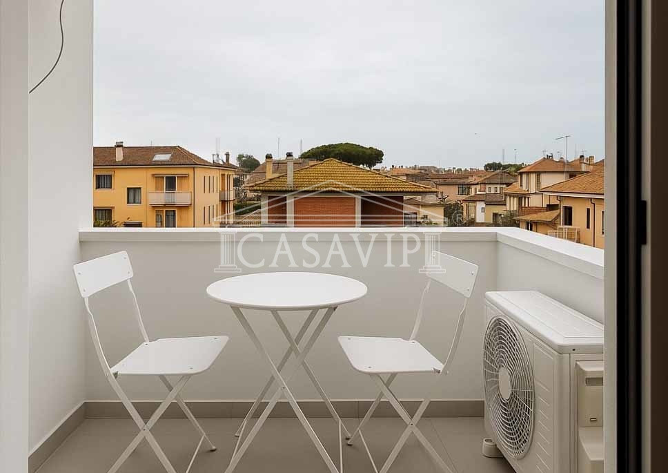 Grande punto di forza della casa è anche la terrazza vivibile situata al piano attico, con splendida vista a perdita d’occhio fino ai monti da un lato, verso la pineta di Fregene dall’altro.