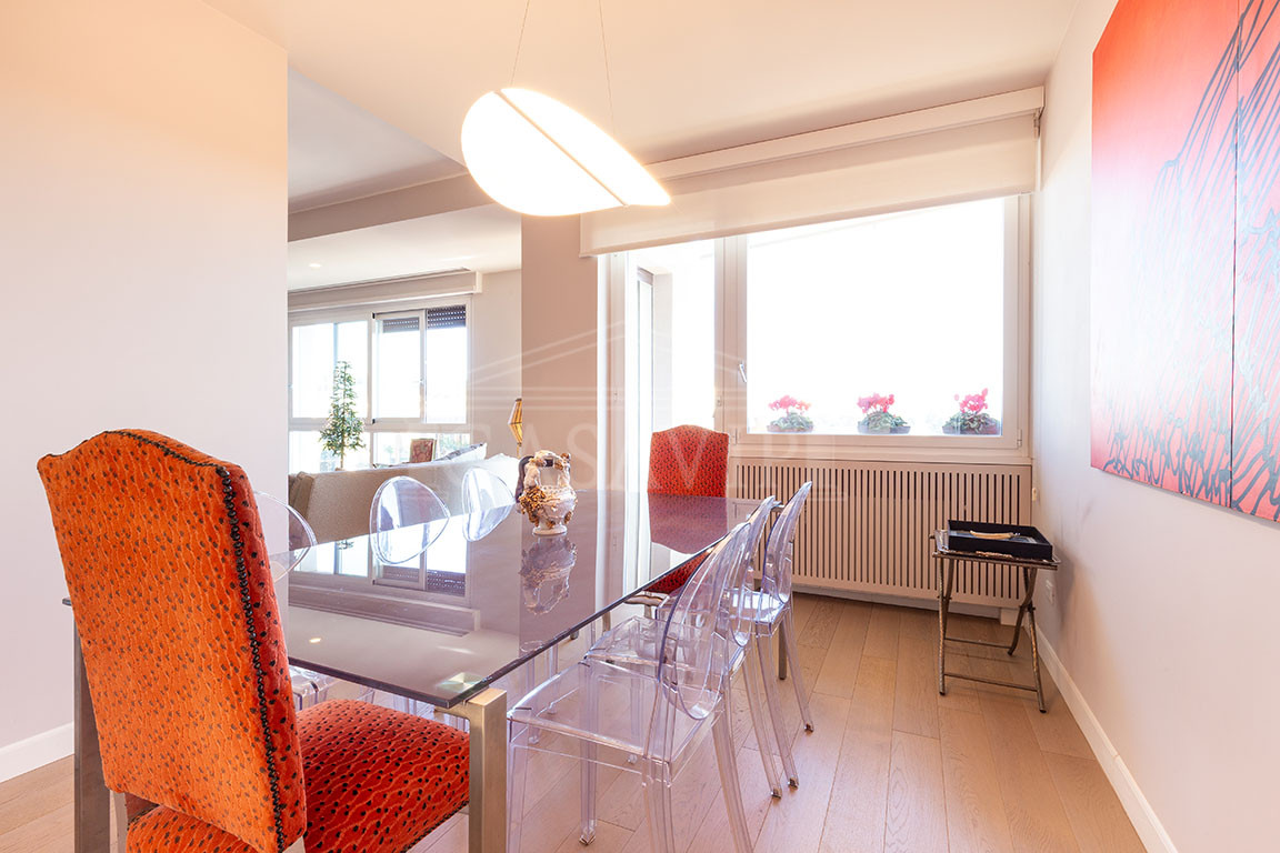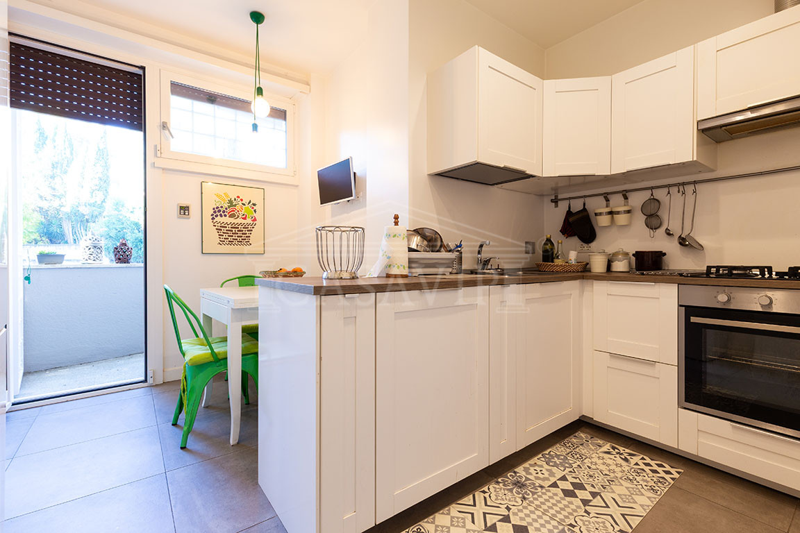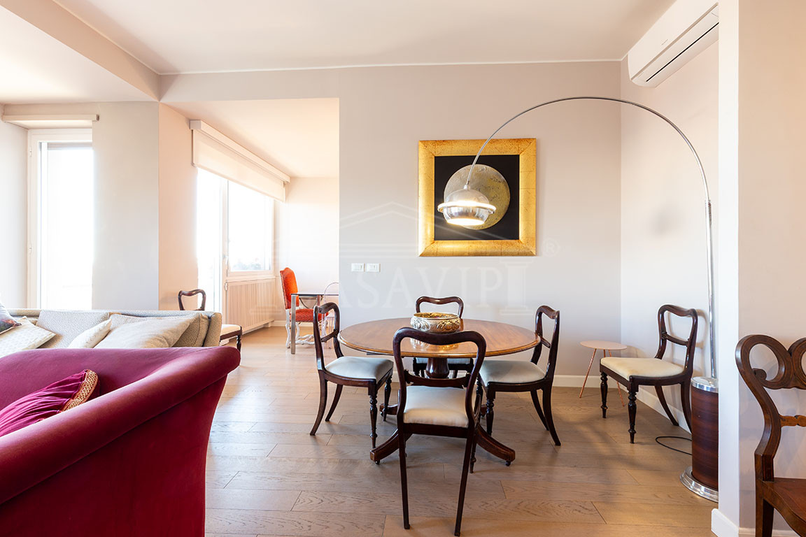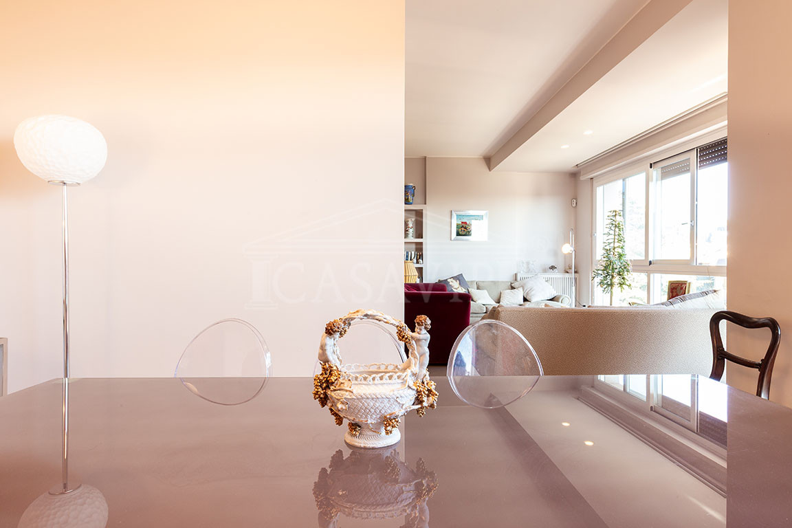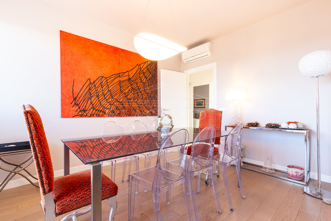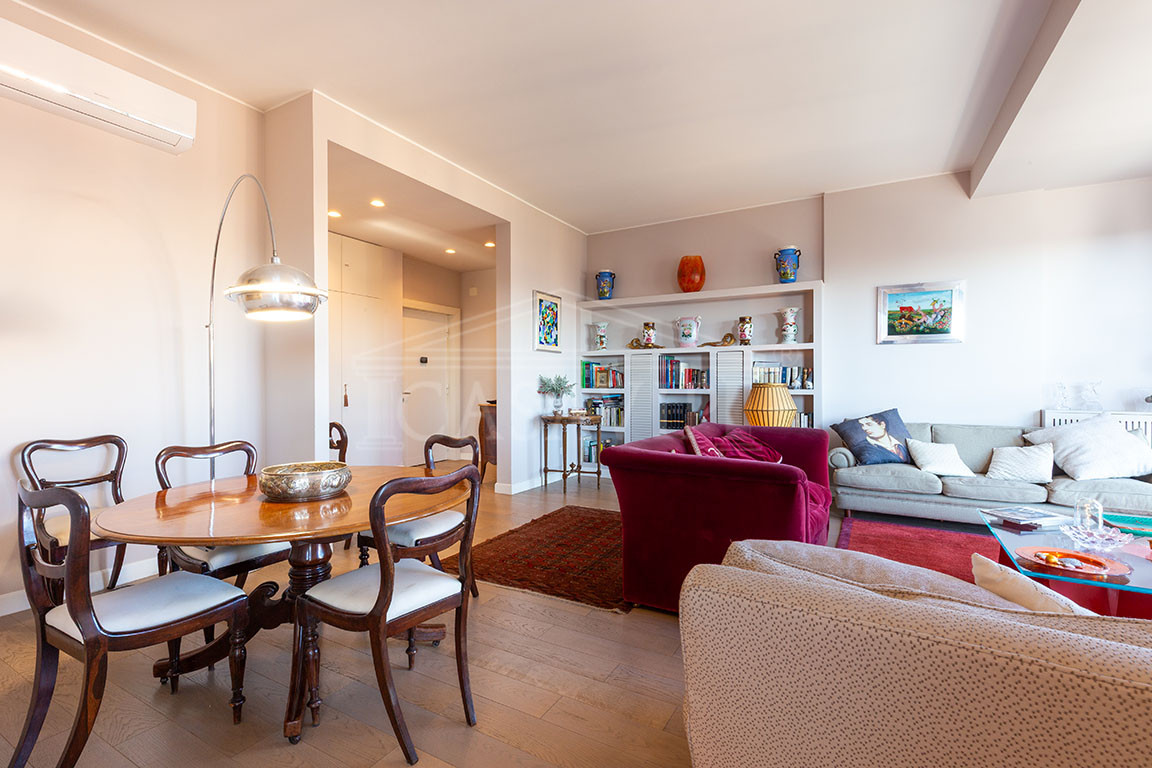 L’immobile, recentemente ristrutturato in stile contemporaneo, è attualmente distribuito in INGRESSO, SALONE DOPPIO , SALA DA PRANZO, CUCINA, DUE CAMERE, DUE BAGNI, LAVANDERIA E RIPOSTIGLIO ma all’occorrenza è facilissimo utilizzare la sala da pranzo quale TERZA CAMERA DA LETTO, avendo l’ambiente accesso anche dal corridoio della zona notte.