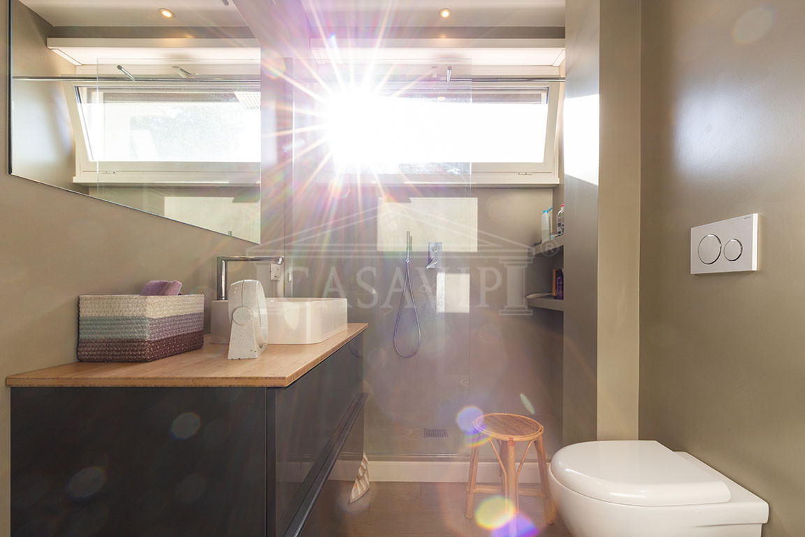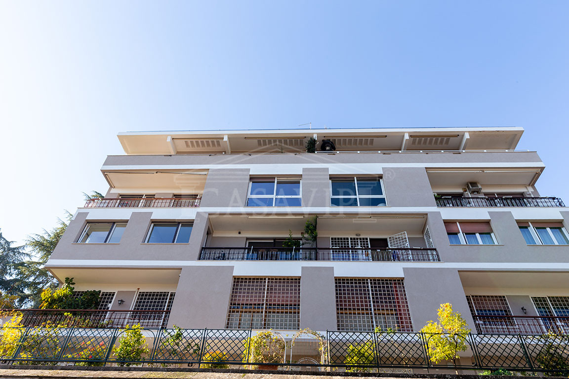 L’esposizione dell’appartamento è perfetta, gode di affacci su tre lati orientati verso sud, est ed ovest, caratteristica che garantisce una luminosità rara, accresciuta anche dall’altezza a cui è collocato rispetto alla strada in salita, che grazie ad un gioco di quote espone verso la sottostante Via Nemea ad un altezza maggiore.