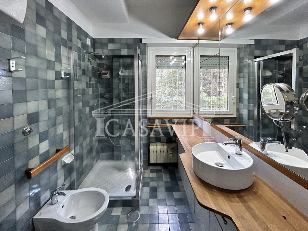 Situato al primo piano dello stabile ma con affacci tranquilli, luminosi e panoramici nel verde, con orientamento a sud est, l'immobile è perfettamente distribuito in zona di rappresentanza e zona notte.