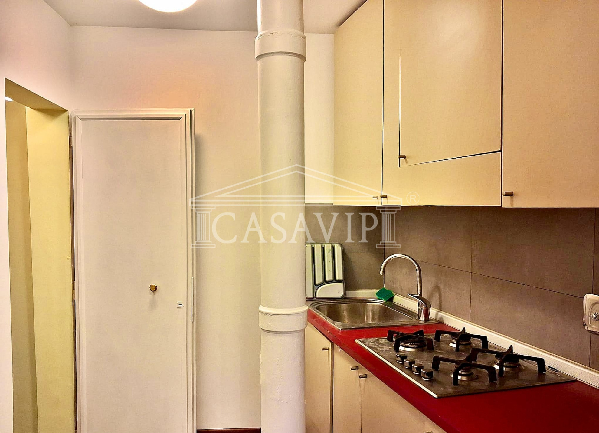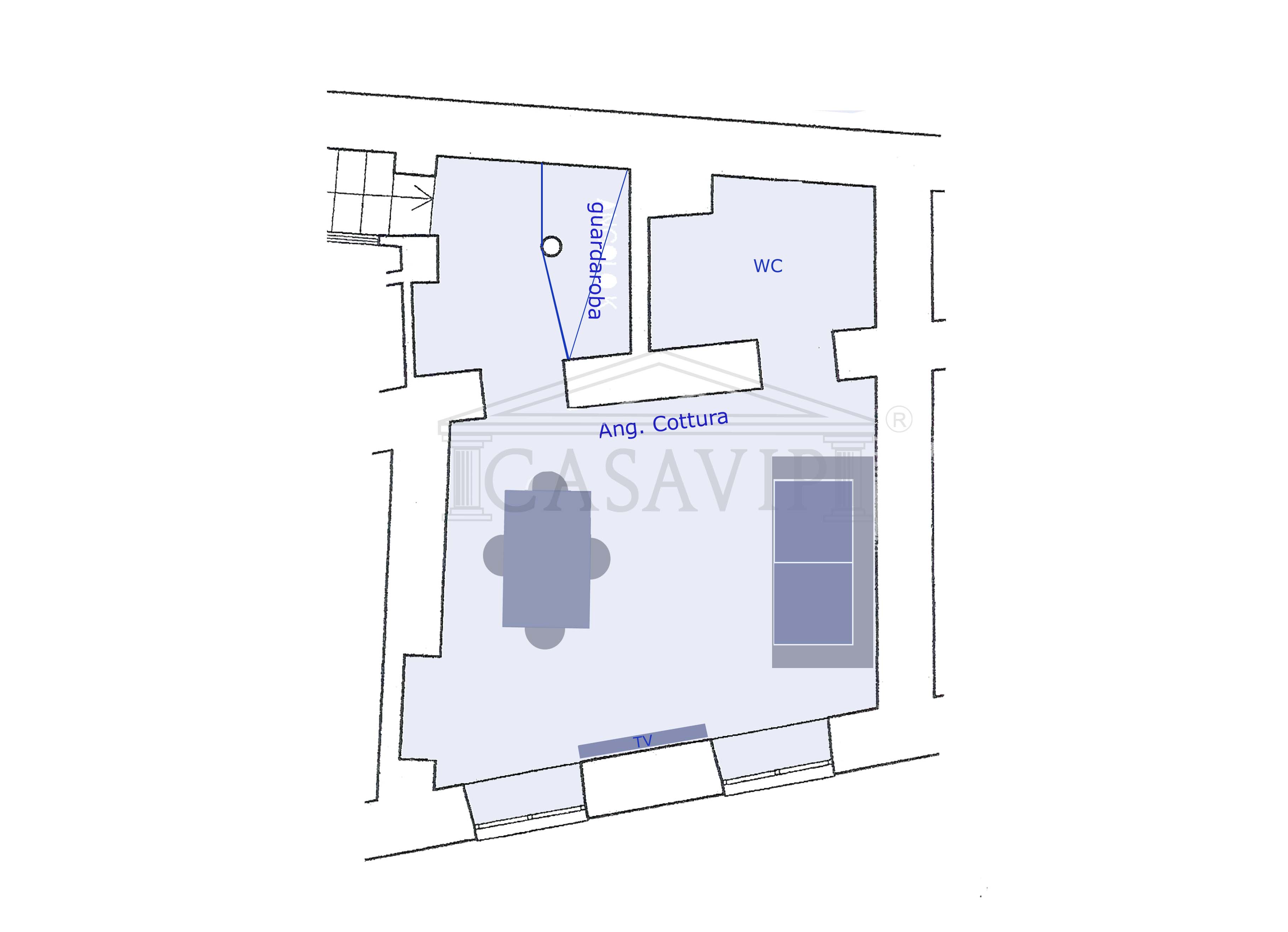 Nella descritta zona ingresso è presente una colonna condominiale a vista che rende non perfettamente fruibile l’angolo cottura; la criticità può essere facilmente risolta creando in quel punto una zona armadio guardaroba, spostando l’angolo cottura nell’ambiente principale, così come visibile nel progetto di massima pubblicato in galleria planimetrie.
