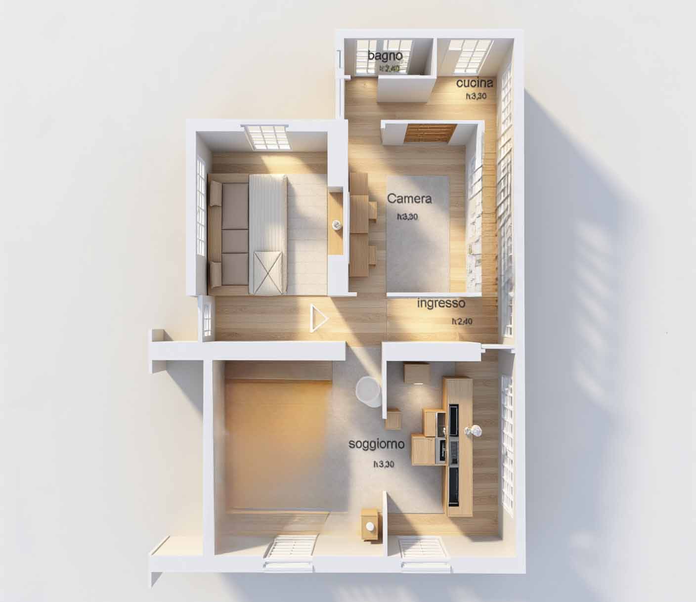 L’immobile gode di doppia esposizione, che assicura buona luminosità durante tutto l’arco della giornata.